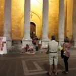El tercero ha sido la misión que realizamos. En la plaza central organizamos una tarde de evangelización. La gente estaba sentada en los bares, leyendo sus guías o comprando recuerdos. Cuando alguien de nosotros empezaba a dar su testimonio se paraban a escuchar. Mientras, en la iglesia que daba a la plaza, estaba expuesta la eucaristía acompañando este momento con cantos y oraciones. Los que estábamos fuera ofrecíamos a los que por allí pasaban un papel y una vela, donde anotar sus penas o sus deseos a Dios. Muchos agradecieron este gesto. Algunos venían del norte de Italia, de la zona más golpeada por la pandemia. Traían mucho dolor y quisieron escribir los nombres de sus familiares y amigos fallecidos. De esta manera tan sencilla quisimos expresar que el Dios de la esperanza está con nosotros, sigue sosteniendo nuestras vidas y cura nuestras heridas.